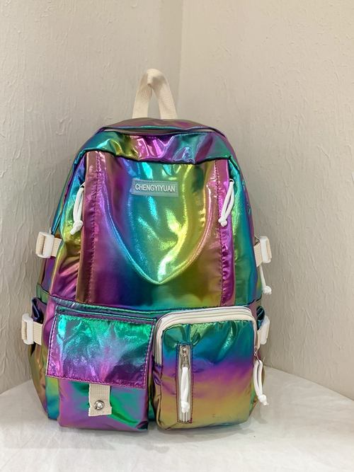 Iridescent, pearlescent, lightweight, and water-resistant backpack school bag