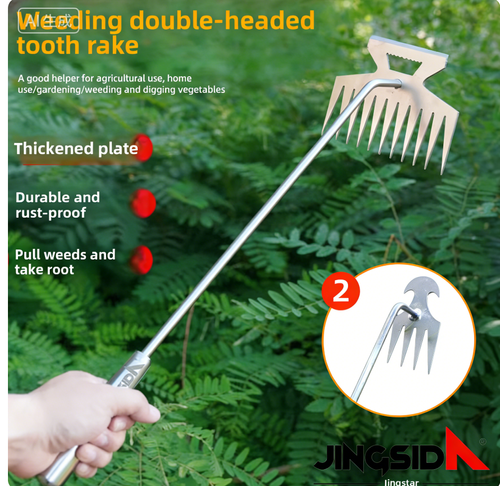 4-tooth 50cm iron handle weeder + 11-tooth 50cm dual-purpose galvanized weeder